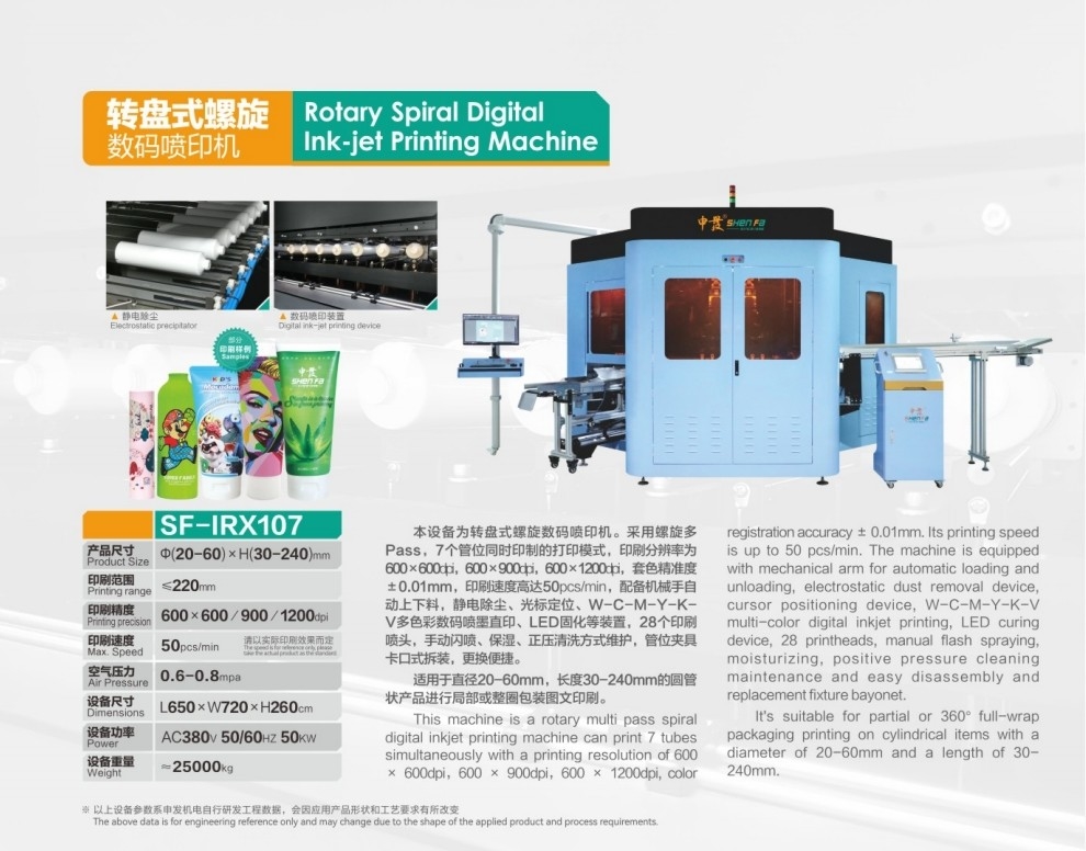 SF-IRX107 回転型スピラル型デジタルインクジェット印刷機